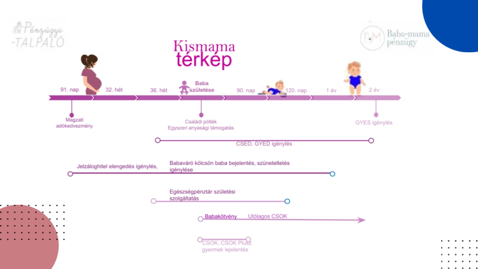 Ez gyakorlatilag egy pénzügyi idővonal, ami végigvezet a kismama-időszakon.