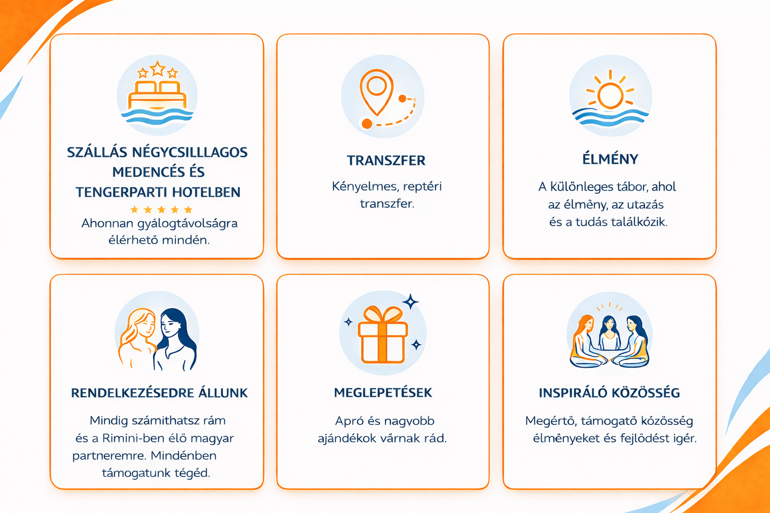 Ez az első alkalom, hogy ezt a tábort megszervezem – és nem véletlenül egyből Olaszországba hívlak. Riminiben gyűjtünk közösen élményeket.